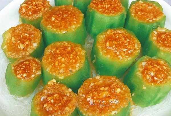 4、将蒜泥放入丝瓜中,烧开水蒸5分钟。烹饪后,将其取出并直接上桌。