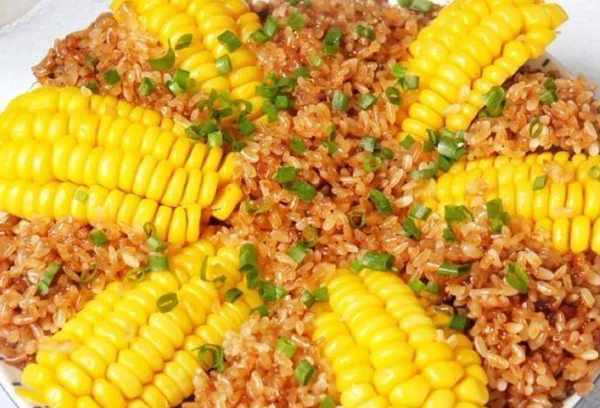 2、糯米洗净后,加入足量清水浸泡一小时以上。浸泡后,捞出沥干水分。然后加入盐、食油和老抽,拌匀上色。将玉米洗净,切成小块。