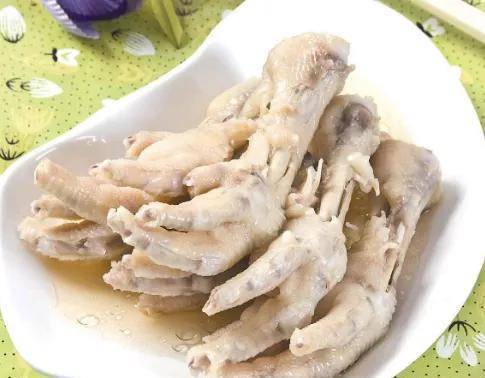 3凤爪洗净,过水焯一下,捞出凤爪,过凉水,去掉爪尖和老皮。
