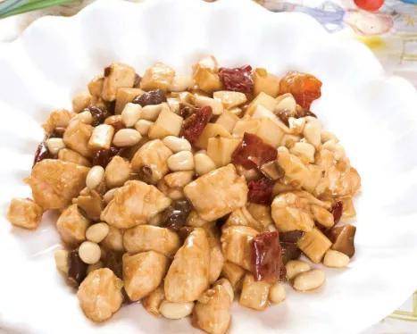3加入鸡丁用大火炒匀,然后加入少许精盐和糖调味。