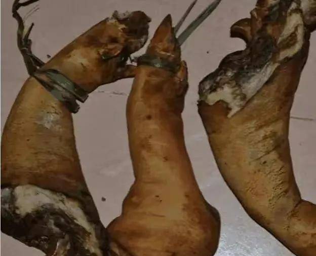 猪蹄也是烟熏的,吃着同样有一股烟熏味。我婆婆还说这腊猪蹄硬邦邦的,把刀都给砍断了,实在费劲。还有猪蹄上的黑色,根本就不懂怎么清洗,怎么刷都刷不干净,婆婆表情:“女婿把这东西拿来送我们,简直就是在折磨人,气得都想把它们给扔了。可是知道这些肉太贵,即便难处理、难吃,也舍不得扔,但是不扔制作起来又麻烦,真是想死的心都有了。”