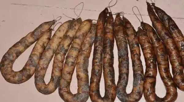 湖南做的腊肠,和我们广东的腊肠区别很大。广东的腊肠是把腊肠放在太阳底下晒干的,而且广式腊肠都会加糖,吃起来是有甜味的。而湖南的腊肠是用柴火烟熏的,看着黑乎乎的,我婆婆说怎么洗都洗不掉那黑不溜秋的颜色,所以把烟熏腊肠蒸着吃也黑乎乎的,特别影响食欲。除了颜色难看,公婆还说这腊肠吃着一股烟熏味,“烟味”太重,实在好难吃。其实刚开始我也很抗拒吃烟熏腊肠,但是多吃2次后,感觉带有那股烟熏味才觉得香。