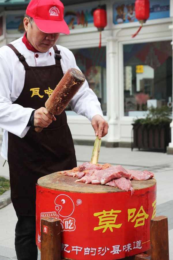 以“扁肉”也就是上海市民常说的小馄饨为例,沙县扁肉讲究皮薄馅大,面皮由手工擀制,轻扯不破,馅料百分百纯猪肉,充满嚼劲,还带几分脆嫩。“我们的肉猪必须养一年以上,体重超300斤,然后选用其后腿肉,切块后人工捶打至少1600次,让它松而不烂,咬上去才有一种独特的脆。”师傅告诉记者。不少食客们也说,扁肉的风味吃过就难忘。“这个馅儿一吃就是纯肉,而且用料很实,真的很好吃。”