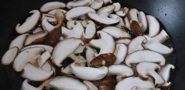 3。锅中取适量水,水烧开,将香菇放入水中焯水,捞出沥干;