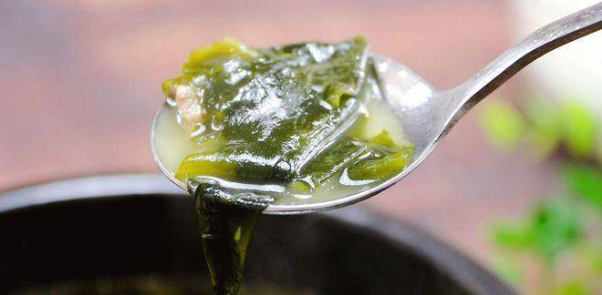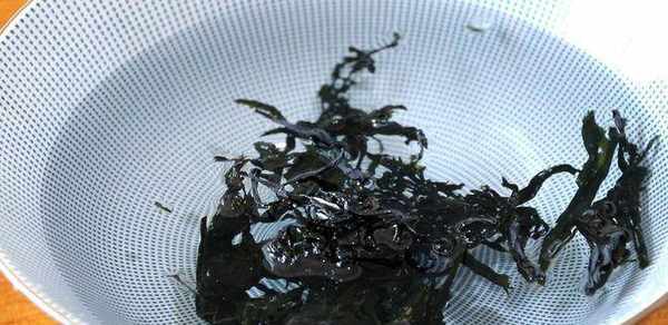 1。裙带菜泡水软化,软化后挤去水分,切成小块;