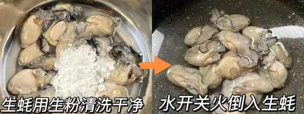 1.先准备生蚝。牡蛎有很多泥。可以用盐水泡一下,让生蚝吐出粘液,然后把生蚝肉扒下来。牡蛎肉拿到手后,用生粉或面粉搓洗一两遍,就超级干净,去除腥味。