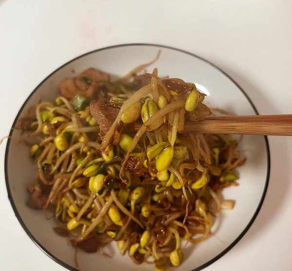 推荐的吃法是肉末烤黄豆芽。荤素搭配,营养均衡,口感更佳。
