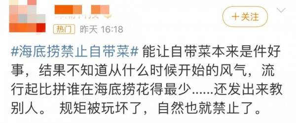 海底捞不让自带食物了。