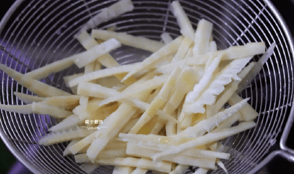 3、 春笋全部都煮到熟透之后,就可以用滤网把春笋捞出,沥干水分备用。