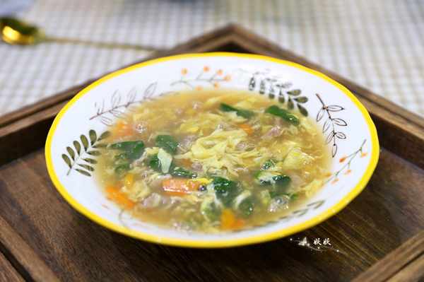 6,鸡蛋打散,边淋入汤锅里边搅拌,让鸡蛋呈漂亮的蛋花状。