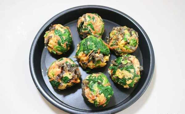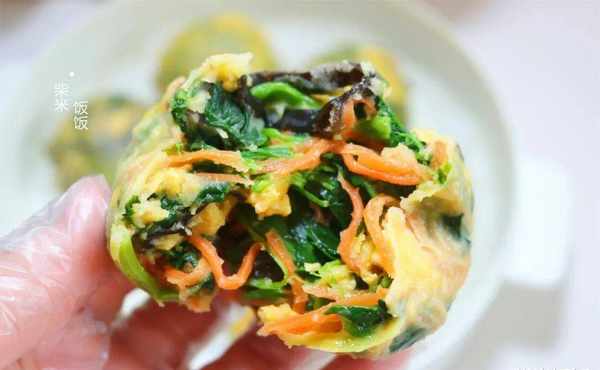 【原料】玉米粉、菠菜、鸡蛋、胡萝卜、木耳、盐、蚝油、面粉