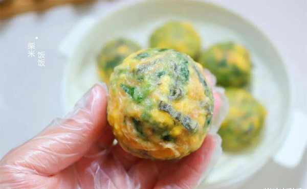 6、将调好的蔬菜揉成大小均匀的丸子。