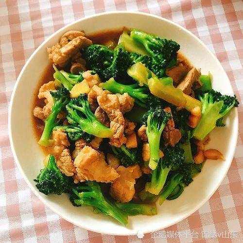 食材:西兰花、瘦肉、木耳、红椒、生姜大蒜。