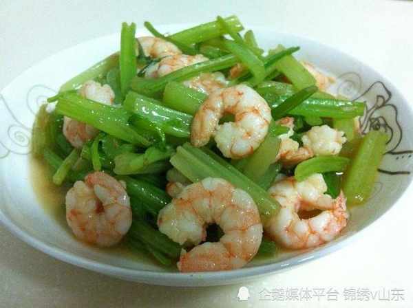 食材:芹菜,虾仁,胡萝卜,蒜末。