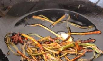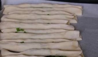 配料:小葱,大料,开水,盐,平底锅,大蒜,面粉,凉水,油等
