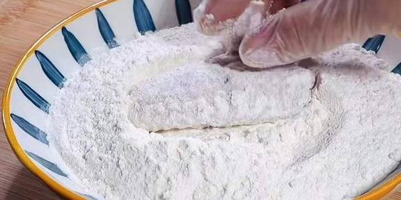 步骤七:裹一层粉,裹出鳞鱼片形状