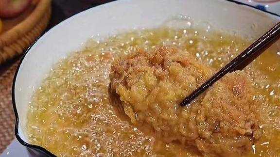 步骤八:油温六成热下锅炸,小火炸至表面酥脆,大概8分钟左右,捞出即可;喜欢皮脆的可以分两次炸,在炸到一半时捞出凉一下降温,再放锅里炸熟。