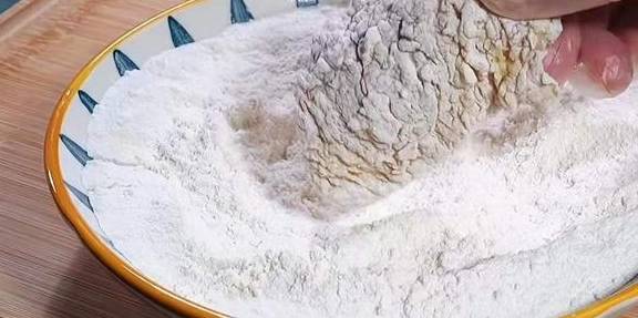 步骤五:先裹一层炸鸡裹粉,裹粉一定要裹得均匀,不均与会使得有厚有薄,影响口感