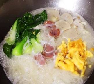 沸腾后,放入面线跟炒好的鸡蛋。