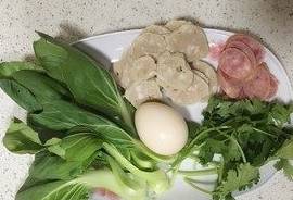 青菜、香菜洗净,拳头母跟腊肠切片。