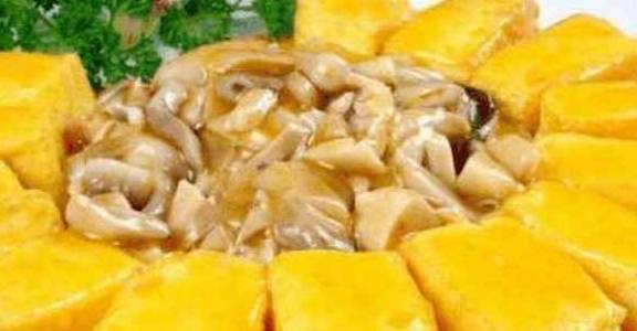 之后将酱汁倒进锅中,熬制片刻后取出浇在豆腐上就可以了。