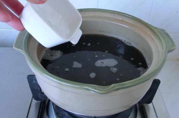 4.大火烧开,转小火煮至豆子软烂,放入冰糖煮化即可食用。