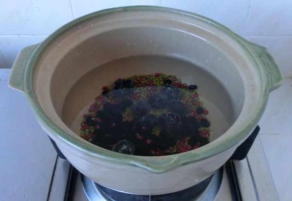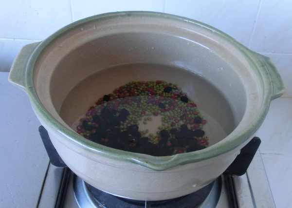 2.砂锅中放入红豆、黑豆、绿豆,加适量清水