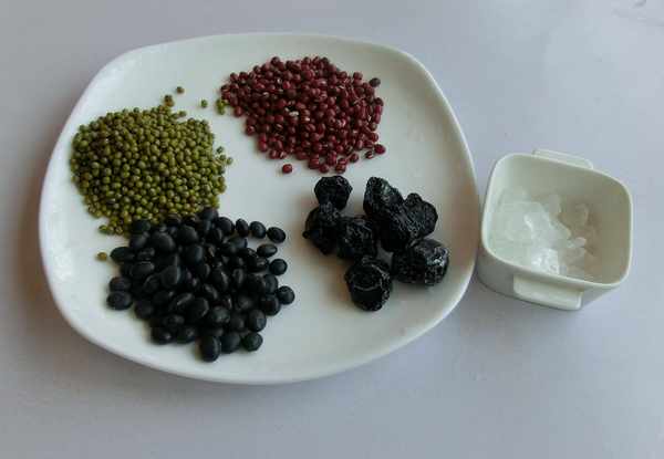 料:红豆30克、黑豆30克、绿豆30克、乌梅40克