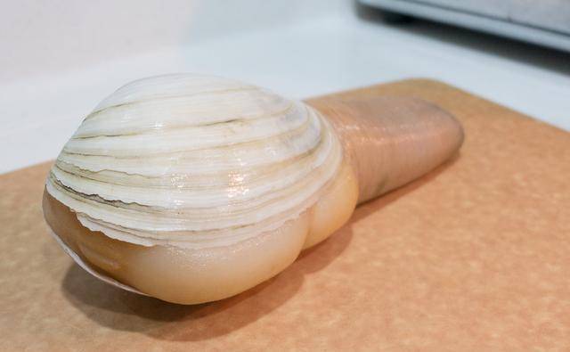 导读:象拔蚌怎样做都好吃,切成薄片配上酱油芥末,这是我的最爱!