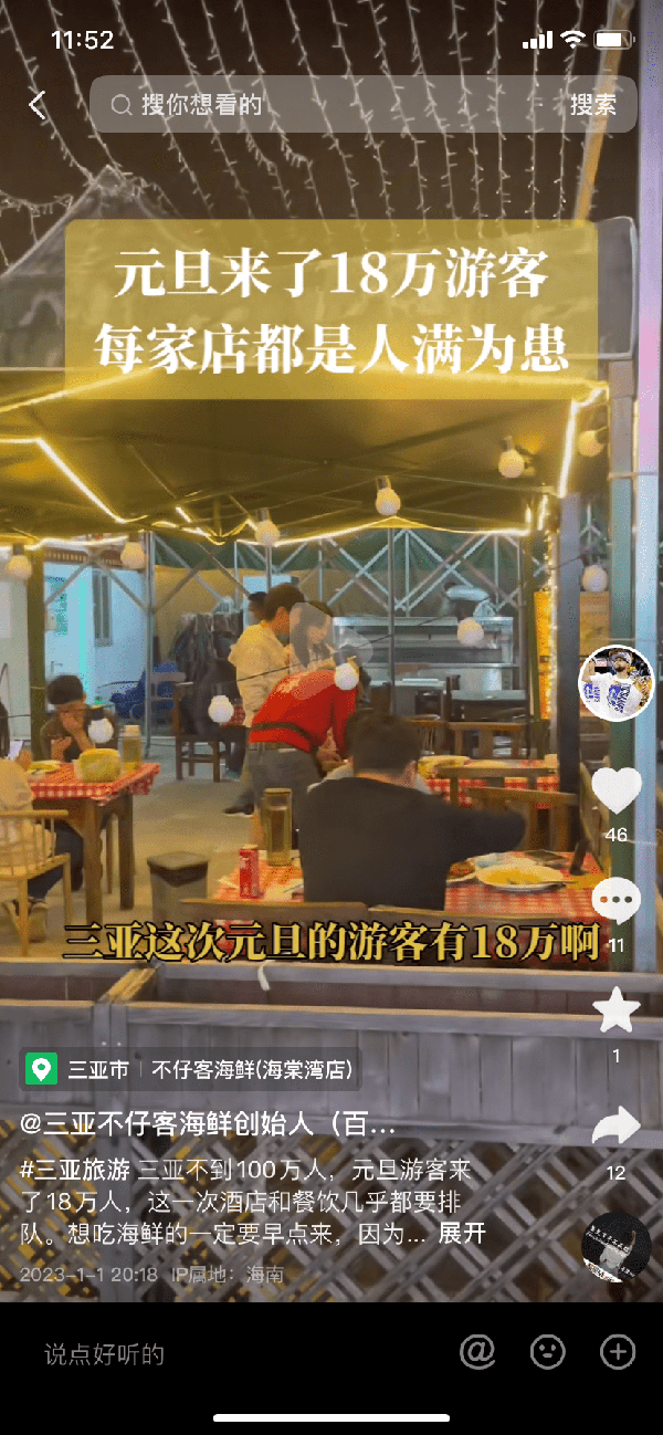 像应伟一样,在这个元旦假期忙碌的还有很多在三亚开餐厅的老板,他们经历了三年的疫情旅游低谷,终于守得云开见月明,迎来报复性消费。