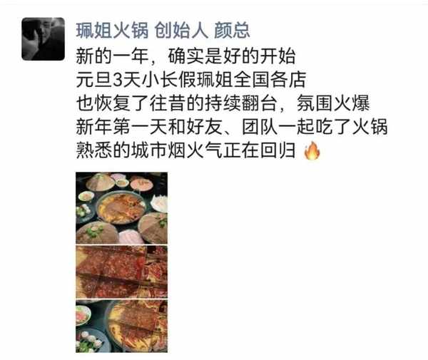对于珮姐火锅创始人颜冬生来说,元旦假期同样是一个心情舒畅的三天。