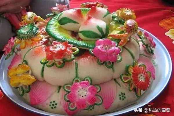 陕西风俗孩子满月舅家送的圆环形蒸馍也叫“曲连馍”。馍面上会做出各种寓意吉祥美好的花纹和图案,意在祝愿孩子长大后生活美满。