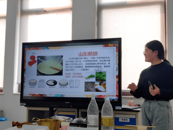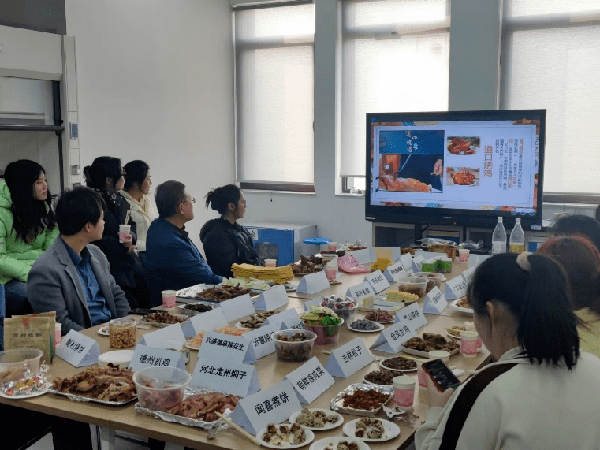活动中,同学们做了精美的PPT分别就自己的家乡美食进行分享,激情澎湃的介绍了自己家乡美食,包括江西三杯鸡的做法、吉林米肠米酒的简介,新疆椒麻鸡的做法及特色,兔头的食用方法,周村烧饼的历史由来等等,大家绘声绘色的描述自己家乡的美食。期间,林老师以江西三杯鸡为例,让同学们思考江西三杯鸡与其他地方的三杯鸡有什么不同?是什么原因造就了不一样的口味。现场同学积极思考,并踊跃发言。