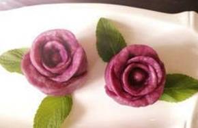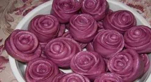 不知道是不是很多男士朋友一到情人节头就很大呢?又要给女朋友送花了,又不能吃又贵,不买就说你不爱她,为了哄女朋友也是没少下功夫吧,很多女孩子喜欢玫瑰花!玫瑰代表爱情是众所周知的,但不同颜色、朵数的玫瑰还另有吉意呢!红玫瑰代表热情真爱;黄玫瑰代表珍重祝福和嫉妒失恋;紫玫瑰代表浪漫真情和珍贵独特;白玫瑰代表纯洁天真;黑玫瑰则代表温柔真心;橘红色玫瑰友情和青春美丽;蓝玫瑰则代表敦厚善良!快来学会这道菜,送给女朋友能吃的玫瑰花吧!紫薯玫瑰花馒头是以面粉主料做成玫瑰状的一种馒头,使用食材有紫薯或紫薯全粉、小麦面粉、酵母,紫薯营养丰富,具特殊保健功能,它含有20%左右的蛋白质,包括18种氨基酸,易被人体消化和吸收。1.将紫薯洗干净去皮备用。