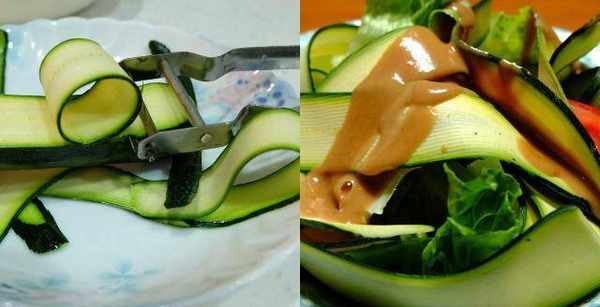 将栉瓜用削皮刀刨成薄片,其他生菜或切或剥成合适大小。将芝麻酱、花生酱、白醋、美乃滋、细糖、味醂、香油搅拌均匀(如果太浓稠可以加一点点开水)尝一下咸淡并用盐调味。淋在栉瓜与其他生菜上,就是一道超好吃的沙拉!(这个芝麻沙拉酱配方很赞请务必试试看)