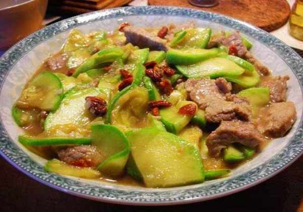 据说在中国的家庭餐桌上很容易看到栉瓜炒牛肉这道菜,基本上我没有去人家家里做过客吃过家常菜,所以没吃过中国版本的。不过我在家里做过还挺好吃的。就是很简单的牛肉炒栉瓜片