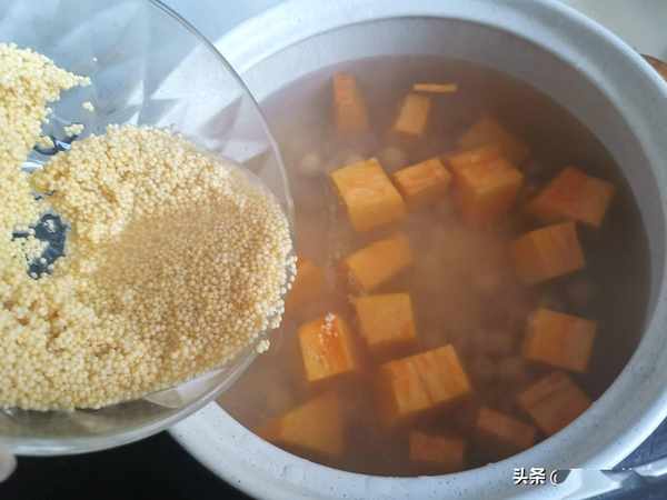 第六步:然後加入洗淨的小米,繼續小火熬煮大約15分鐘。