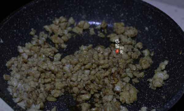 腌制入味的鸡胸肉粒,同样放入锅中翻炒熟后盛出。