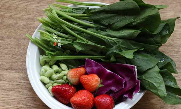 另外准备一些蔬菜,例如菠菜、紫甘蓝、青豆,还可以准备一些水果,蔬菜可以根据自己喜欢的准备,娃娃菜、甜豆、荷兰豆、青椒、茄子都可以。