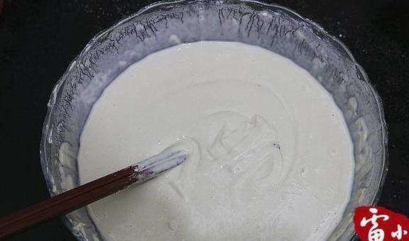 2、酵母装在一个小碗里,加入一点温水化开,倒入碗中,再慢慢的加入其它的温水,一边倒水一边搅拌,将面粉搅拌成流动的面糊状就可以了。非常简单,手都不用弄脏。