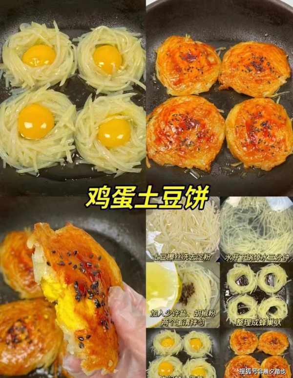 做法:土豆泥搓去淀粉,水烧开三分钟,加少许盐,胡椒粉,两个蛋清拌匀,锅里油烧热,把土豆泥排成蜂窝状,放中间放一个蛋黄,小火慢慢翻炒,刷上番茄酱,撒上黑芝麻