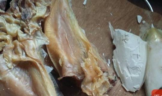 2.取一半墨鱼干,放入清水中浸泡两个小时,