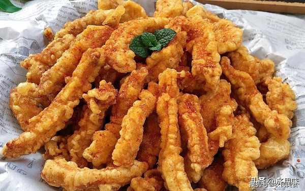 3、锅中倒入适量花生油,油烧6成热(筷子放进去冒密泡泡)把鸡肉一条一条的放锅中(避免粘连)中小火炸至定型,表面黄色捞起,再次加热油温,复炸至酥脆捞出控油,撒椒盐和辣椒粉即可!
