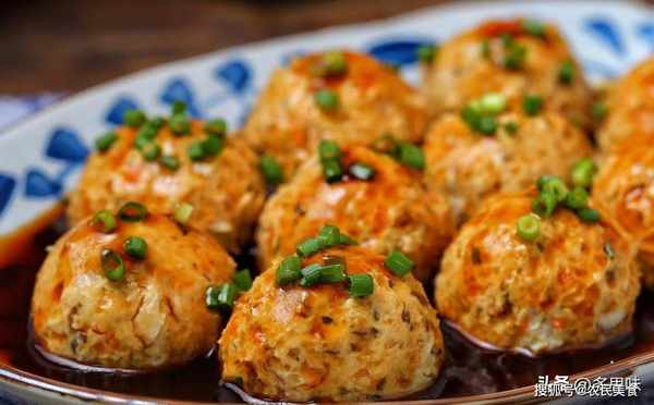 香菇蒸鸡肉丸,主食材为鸡胸肉、香菇和胡萝卜,荤素搭配营养十足,富含蛋白质热量又低,老少皆宜哟。