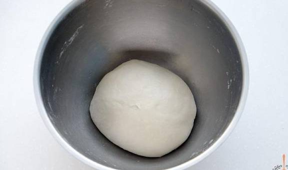 1.将300克中筋面粉放入盆中,在面粉中间慢慢加入159毫升冷水,和成雪花状后,用手掌根将面粉揉擦成团,充分揉成表面光滑的面团,盖上容器,醒发15分钟;