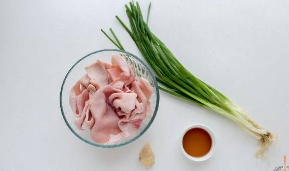 材料:猪皮500g、料酒15毫升、小葱少许、生姜1块
