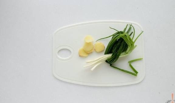 2.葱、生姜洗干净,葱打成葱结,生姜切片,备用。