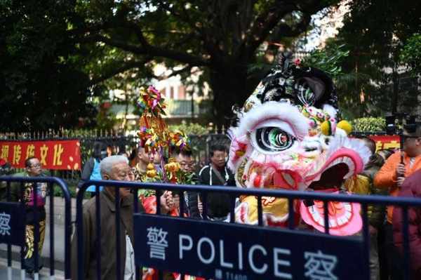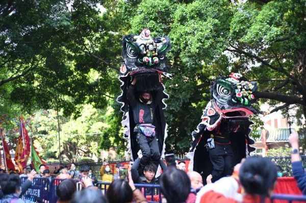开始八狮巡游、狮子拜观音、采青、走街串巷等,