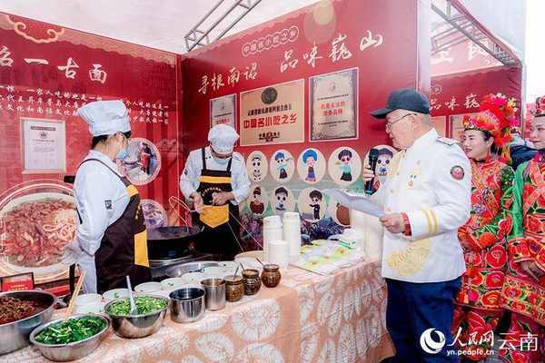 人民网大理2月26日电 (记者符皓)长街宴、“南诏一古面”、饵丝、蜜饯、米糕等传统特色美食荟萃,彝族打歌、高台社火、街舞秀、厨王争霸赛等精彩节目亮点纷呈……2月25日,云南省大理州巍山县古城内一片欢腾,暌违三年的第十届中国大理巍山小吃节开幕。