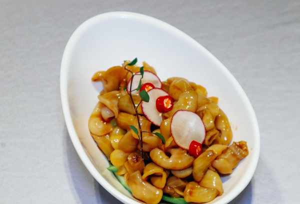 除了招牌鱿鱼,还有各式各样的闽菜和海鲜,迎合厦门人的口味。开胃菜的芥末鱼卷真的很开胃。鱼肚很脆。加了些芥末提味后,爽口又超级上瘾。